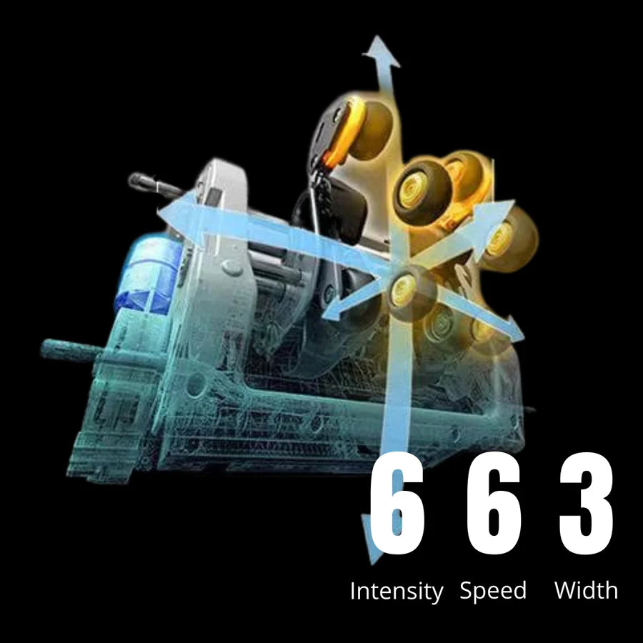 Experience the extraordinary with our 3D WaveSoothe™ Calf Massage Mechanism – it's not your typical calf compression session. Picture airbags gently enveloping your calves, pulsating in a rhythmic pattern to mimic the calming motion of waves.