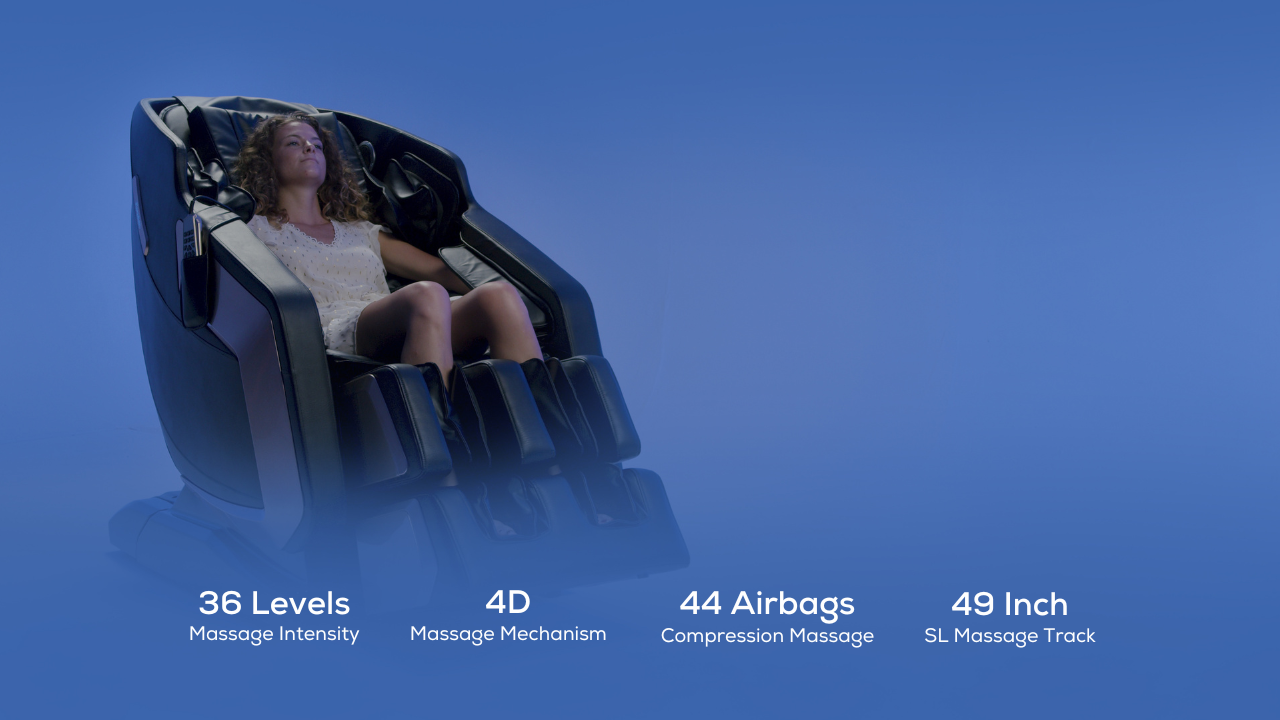 Indulge in the epitome of luxury and innovation with the Grand Galaxy 4D massage chair. Featuring an expansive shoulder area for enhanced comfort and the exclusive 3D WaveSoothe™ Calf Massage Mechanism, this chair offers a rejuvenating massage experience like never before. Crafted with premium vegan leather and carbon fiber heating, it envelops your body in warmth while ten built-in programs refresh and revitalize you from head to toe. The advanced 4D massage track targets specific areas of tension, ensuring unparalleled relaxation. With its sleek design and wall-hugging recliner form factor, the Grand Galaxy 4D seamlessly blends into any space, making it a must-have addition to your home. Elevate your comfort and wellness with the Grand Galaxy 4D - your gateway to ultimate relaxation.