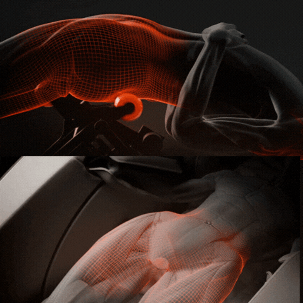 Titan 4D’s advanced S+L track system delivers continuous, multi-dimensional massage coverage from the top of the shoulders to the base of the glutes, following the body’s natural curves with precision. Anchored by a commercial-grade iron frame, the track is secured with aerospace-level stability — ensuring unmatched durability, strength, and performance for years of peak operation.